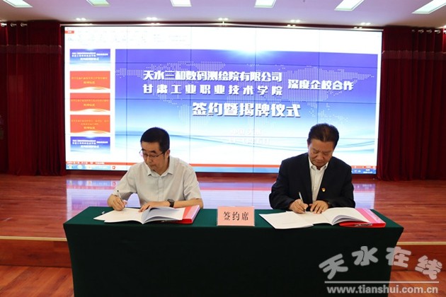 為貫徹落實(shí)教育部“2020年全國職業(yè)教育教師企業(yè)實(shí)踐基地工作推進(jìn)會”和省教育廳“全省有效推進(jìn)職業(yè)教育教師企業(yè)實(shí)踐基地與職業(yè)院校合作建設(shè)‘雙師型’教師隊伍視頻會”的會議精神,5月22日上午,甘肅工業(yè)職業(yè)技術(shù)學(xué)院與天水三和數(shù)碼測繪院有限公司順利舉行校企合作簽約暨揭牌儀式。