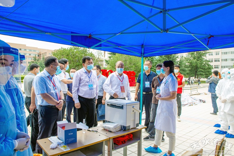 8月27日上午,省教育廳副廳長張國珍一行4人督導(dǎo)檢查天水師范學(xué)院疫情防控工作。校長安濤,黨委常委、副校長曹愛明、汪詠國、王文東一同檢查。