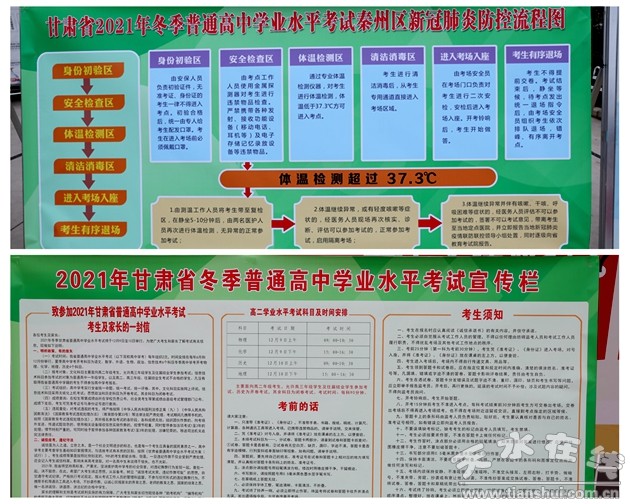 12月9日至10日,2021年冬季甘肅省普通高中學業(yè)水平考試如期舉行,天水考區(qū)周密部署,精心組織,通力合作,實現了2021年全市“平安考試”“健康考試”的目標。