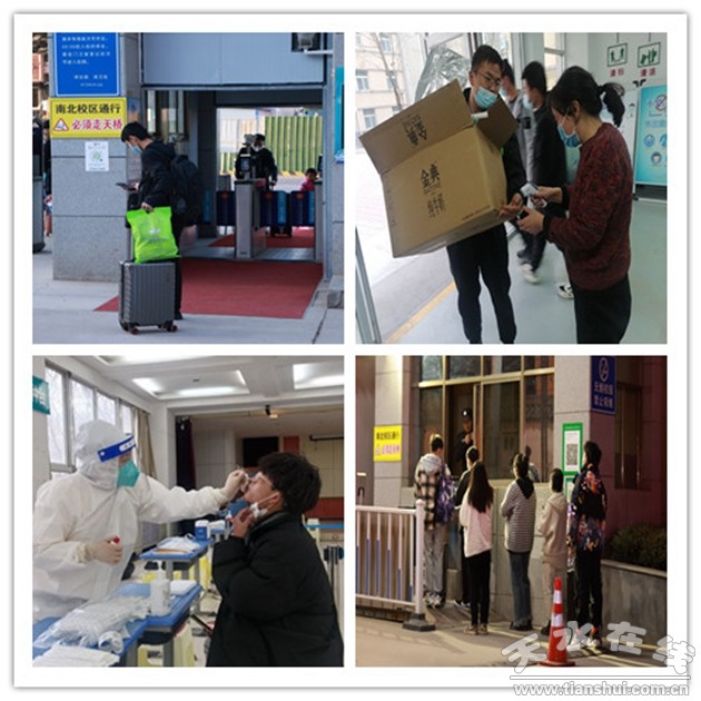 “同學,你好!我們將進行查驗健康碼行程碼、測量體溫、填寫返校登記表等環(huán)節(jié),請大家有序間隔排隊……”上午7時,已早早守候在南北校區(qū)門口的返校工作人員迎來了返校學子,F(xiàn)場依次核驗身份、檢測體溫、消殺行李、配發(fā)口罩、掃碼入校、指引核酸檢測地點。各二級學院輔導員、班主任及學生志愿者們熱情的為每位同學提供著服務,以認真負責的態(tài)度精準落實好每個環(huán)節(jié),保障學生返校工作順利有序開展。