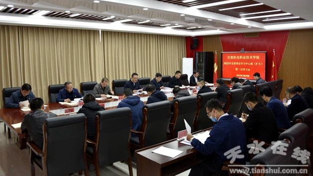 2月28日下午,甘肅機(jī)電職業(yè)技術(shù)學(xué)院黨委書記堅(jiān)葆林主持召開學(xué)院2022年第一次黨委理論學(xué)習(xí)中心組(擴(kuò)大)集體學(xué)習(xí)會(huì)議。黨委班子成員趙彥軍、李自勇、張德龍、毛文輝、文云、楊俊出席會(huì)議,黨委各部門主要負(fù)責(zé)人、各基層黨組織書記及工會(huì)、團(tuán)委負(fù)責(zé)人參加。
