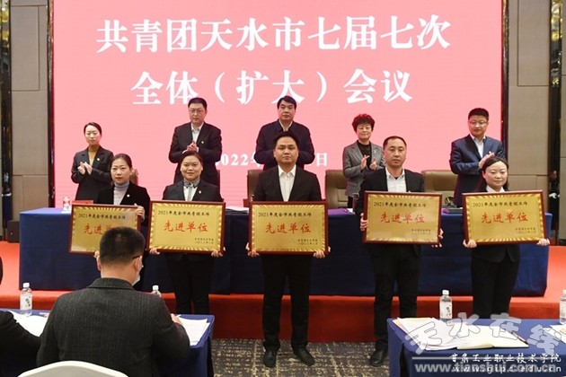 2月24日,共青團(tuán)天水市委召開(kāi)共青團(tuán)天水市七屆七次全體(擴(kuò)大)會(huì)議。市委副書(shū)記楊小平、副市長(zhǎng)汪小娟、團(tuán)市委書(shū)記李海巴出席會(huì)議。會(huì)上,表彰了2021年度優(yōu)秀基層團(tuán)組織,甘肅工業(yè)職業(yè)技術(shù)學(xué)院團(tuán)委榮獲2021年度全市共青團(tuán)工作先進(jìn)單位稱號(hào)。