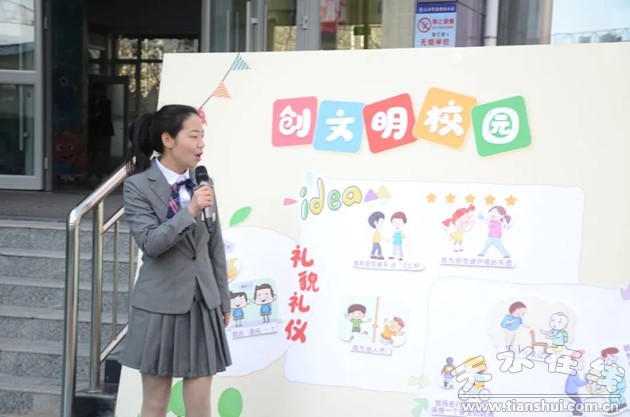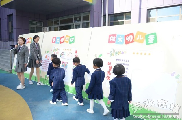 主持人宣布三月是我園的文明禮儀踐行月,她向全園小朋友們發(fā)起倡議,文明禮儀,從我做起,爭創(chuàng)文明校園,爭當(dāng)文明班級,爭做文明兒童!