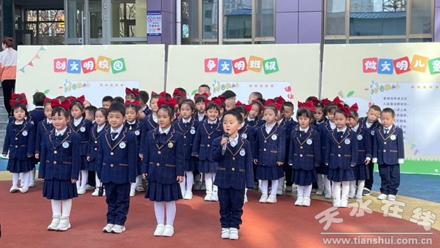 陽春布德澤,萬物生光輝。值此新學(xué)期起步之際,為了更好地培育和踐行社會主義核心價值觀,幫助幼兒“扣好人生第一?圩印,切實提高師幼文明禮儀素養(yǎng),構(gòu)建“人人有禮貌,個個懂禮節(jié),處處講禮儀”的校園文化特色,豐富充實我園德育課堂建設(shè),助力推進(jìn)天水市創(chuàng)建全國文明城市工作,3月7日上午,天水市實驗幼兒園以“創(chuàng)文明校園,爭文明班級,做文明兒童”為主題,隆重舉行新學(xué)期升旗儀式暨開學(xué)典禮。