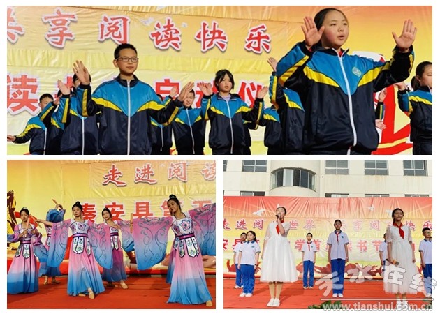 啟動(dòng)儀式上,舉行了升國(guó)旗、奏唱國(guó)歌儀式,學(xué)生表演了舞蹈《書(shū)簡(jiǎn)》、詩(shī)朗誦《 詩(shī)意中國(guó) 》、讀書(shū)手語(yǔ)操《長(zhǎng)歌行》等節(jié)目,師生代表還開(kāi)展了集體簽名活動(dòng),校長(zhǎng)雒應(yīng)太給教師和學(xué)生代表贈(zèng)送圖書(shū)。