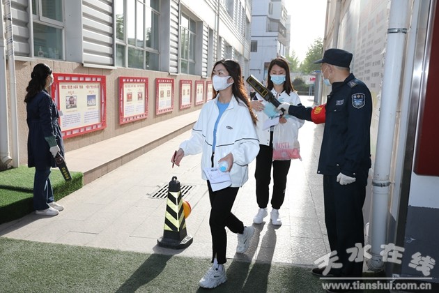 天水考區(qū)共報(bào)名1818人,考生來源為駐市三所高職學(xué)院和戶籍為我市的蘭州一所高職學(xué)院的應(yīng)屆畢業(yè)生。全市共設(shè)2個(gè)正?键c(diǎn),68個(gè)考場(chǎng),其中:天水市衛(wèi)生學(xué)?键c(diǎn)44個(gè)考場(chǎng)、天水市新華門小學(xué)考點(diǎn)24個(gè)考場(chǎng),每個(gè)考點(diǎn)均設(shè)3個(gè)備用、隔離考場(chǎng)。共抽調(diào)監(jiān)考教師148人,考務(wù)工作人員60余人。另設(shè)羅玉中學(xué)隔離考點(diǎn),在醫(yī)學(xué)觀察酒店設(shè)1個(gè)隔離考場(chǎng),考點(diǎn)全部設(shè)在秦州區(qū)。
