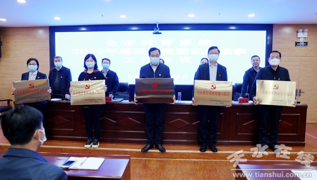 會上,給2021年度全市教育系統(tǒng)20個黨建示范點授牌。