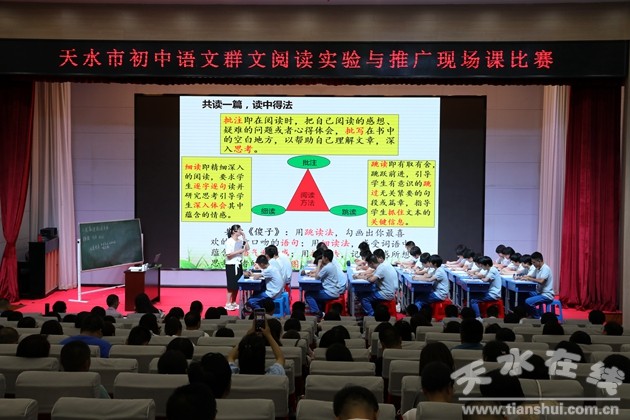 6月26日至28日,天水市教育局分別在秦州區(qū)建二小學(xué)、市逸夫?qū)嶒?yàn)中學(xué)舉辦了義務(wù)教育學(xué)段“群文閱讀”現(xiàn)場(chǎng)優(yōu)質(zhì)課比賽活動(dòng),集中展示全市“群文閱讀”取得的階段性成果,探索“群文閱讀”課堂教學(xué)的有效途徑。