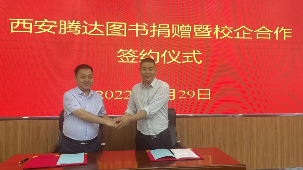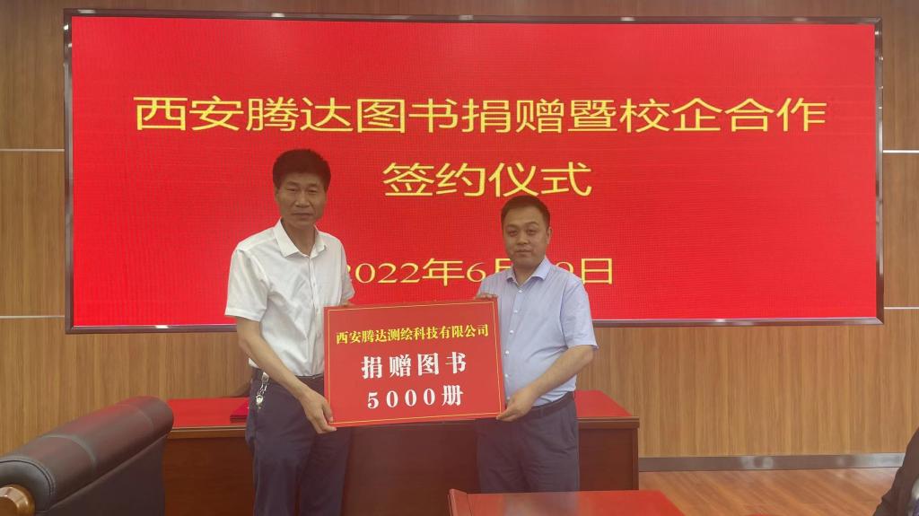 活動(dòng)中,西安騰達(dá)測(cè)繪科技有限公司為學(xué)院捐贈(zèng)圖書5000冊(cè);張升與測(cè)繪工程學(xué)院院長(zhǎng)趙淑湘共同簽訂了《校企合作協(xié)議書》;張升為我院授牌“西安騰達(dá)測(cè)繪科技有限公司技能型人才培養(yǎng)基地”。