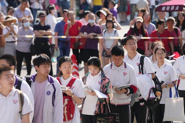 6月7日,在北京市陳經(jīng)綸中學(xué)考點(diǎn)外,考生排隊(duì)等待進(jìn)入考場(chǎng)。 新華社記者 鞠煥宗 攝