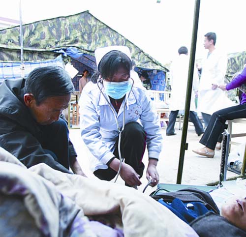 10天里,及時(shí)到達(dá)災(zāi)區(qū)搶險(xiǎn)救災(zāi)的人民解放軍、武警官兵、醫(yī)務(wù)工作者及志愿者冒著不時(shí)的余震,奮力搶救傷員、刨挖被埋物資、拆除險(xiǎn)情障礙、搭建臨時(shí)帳篷、搶修被毀路段的場面使人感動(dòng)。