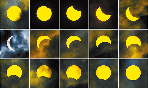 蘭州市皋蘭山上拍攝到的日偏食全過程。本報記者 高 檣 攝