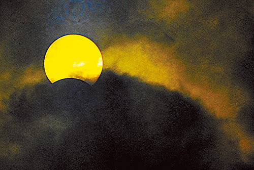 蘭州市皋蘭山上拍攝到的日偏食景觀。本報記者 高 檣 攝