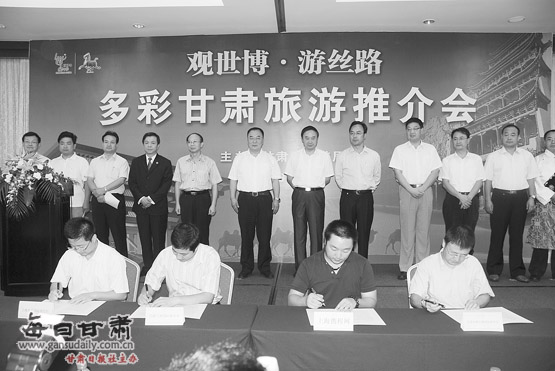 。ㄔ谏虾J啦⿻拭C活動周期間,省旅游局舉辦了“觀世博·游絲路”多彩甘肅旅游推介會。)