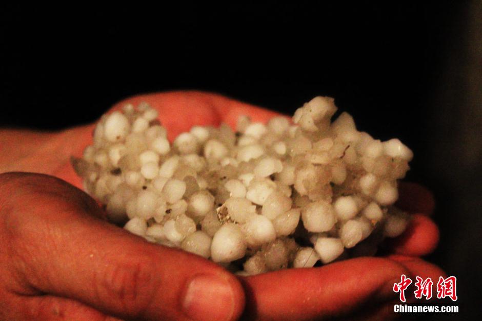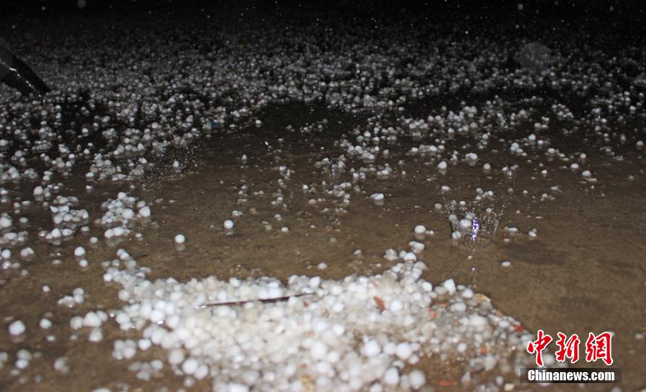 今天下午七點(diǎn)二十分左右,蘭州市遭遇冰雹襲擊。直徑約一公分的冰雹在地下鋪了厚厚一層,城市里部分路段的積水超過了十公分。目前強(qiáng)降水仍在持續(xù),暫時(shí)沒有接到災(zāi)情報(bào)告。
