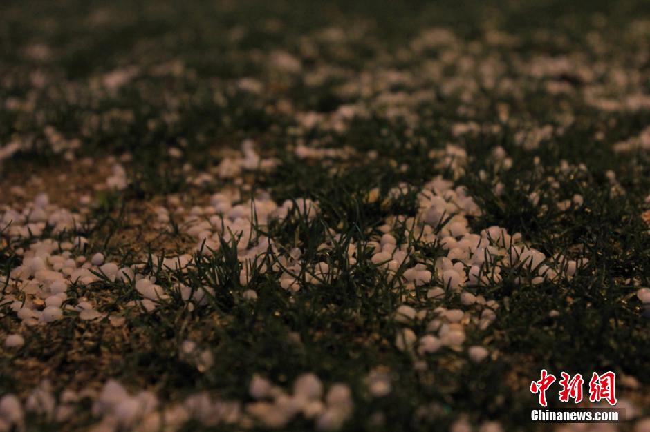 4月14日19時(shí)30分許,蘭州主城區(qū)電閃雷鳴,突降冰雹,持續(xù)了半個(gè)小時(shí)。楊艷敏 攝