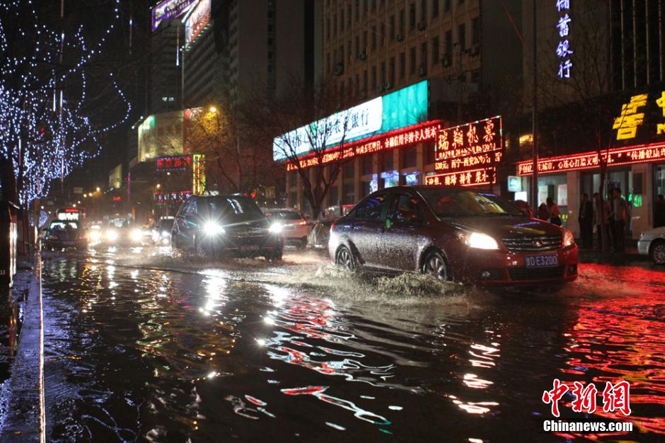 4月14日晚間,蘭州主城區(qū)突降冰雹,持續(xù)了半個(gè)小時(shí)左右,落地后片刻化成積水,來往車輛濺起水花,部分路段路邊積水沒過腳踝,造成市民出行不便。李清曉 攝