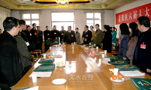 蔣曉強書記在看望各位代表時首先對新當選的區(qū)六屆人大代表們表示熱烈的祝賀和親切的問候。他說,本次人民代表大會是在麥積區(qū)改革開放和現(xiàn)代化建設事業(yè)進入“十一五”時期召開的一次承前啟后、繼往開來的重要會議,對麥積區(qū)的未來和發(fā)展有著十分重要的意義。本次大會不僅要審議區(qū)五屆政府的各項《工作報告》,選舉產(chǎn)生新一屆人大和政府領導班子,同時,還將選舉產(chǎn)生出席代表我區(qū)出席市五屆人民代表大會的代表。希望各位代表以飽滿的政治熱情和強烈的責任感,認真履行人民賦予自己的神圣職責,真正體現(xiàn)人民的意愿和要求,圓滿完成各項議程,努力把本次大會開成一次求實奮進的、凝聚人心的大會。