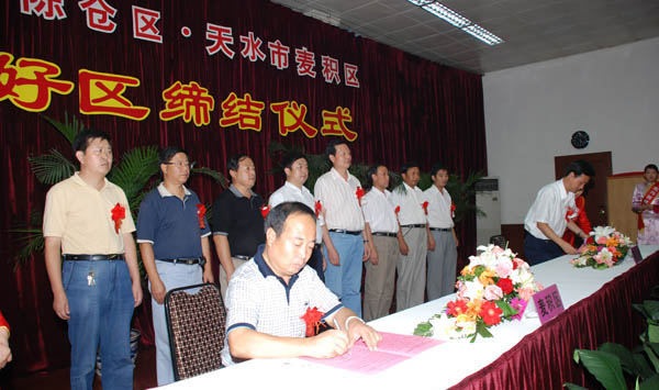 在友好區(qū)締結(jié)儀式上,麥積區(qū)委常委、副區(qū)長(zhǎng)王曉琴,陳倉(cāng)區(qū)委常委、常務(wù)副區(qū)長(zhǎng)李曉陽(yáng)分別介紹了兩區(qū)經(jīng)濟(jì)社會(huì)發(fā)展情況。麥積區(qū)委副書記、區(qū)長(zhǎng)張克強(qiáng),陳倉(cāng)區(qū)委副書記、區(qū)長(zhǎng)賀向東代表兩區(qū)政府簽訂了友好協(xié)議。兩區(qū)還互贈(zèng)了禮品。麥積區(qū)委書記蔣曉強(qiáng)和陳倉(cāng)區(qū)委書記王西科在締結(jié)儀式上分別作了重要講話。