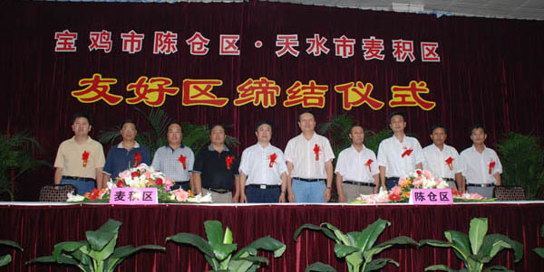 麥積區(qū)和陳倉(cāng)區(qū)渭水一帶相連,文化一脈相承,兩地習(xí)俗相近,友誼源遠(yuǎn)流長(zhǎng),經(jīng)濟(jì)互補(bǔ)性強(qiáng),彼此一直都在熱切關(guān)注著對(duì)方的發(fā)展和進(jìn)步,為兩區(qū)之間友好往來(lái)、共同發(fā)展奠定了堅(jiān)實(shí)基礎(chǔ),成為締結(jié)友好關(guān)系的內(nèi)在動(dòng)力。兩區(qū)區(qū)情基本相近,均為大關(guān)中經(jīng)濟(jì)帶上的重要節(jié)點(diǎn)城市,隴海鐵路和310國(guó)道將兩區(qū)緊緊相連,在經(jīng)濟(jì)、技術(shù)、人才、信息、文化、旅游等許多方面交流合作的潛力十分巨大,領(lǐng)域十分廣闊。