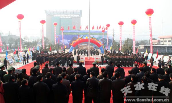 天水市政協(xié)主席宋敬國,市委常委、市紀委書記楊維俊,市委常委、市委秘書長蔣曉強,市人大常委會副主任任伯年,副市長雷鳴,天水軍分區(qū)司令員鄭黎,市政協(xié)副主席王鳳保,市長助理、市公安局局長呂淙江,市長助理、市政府秘書長安永等應邀出席儀式。麥積區(qū)委書記蒲軍,區(qū)委副書記、區(qū)長張克強,區(qū)委常委、政法委書記尹首奎,區(qū)委常委、人武部部長任長軍,區(qū)委常委、副區(qū)長謝筱會及其他各縣區(qū)黨委、政府主要負責同志等出席儀式。