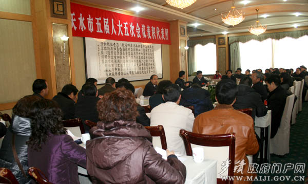 1月17日下午,出席市五屆人大五次會議的麥積代表團(tuán)在市迎賓館討論地點舉行第一次全體會議。市委常委、統(tǒng)戰(zhàn)部長李美華,市人大常委會副主任韓一兵,副市長彭鴻嘉等代表出席會議。代表團(tuán)第一召集人蒲軍主持會議。