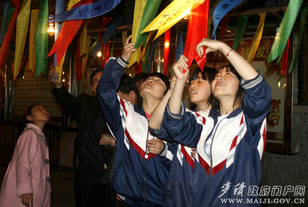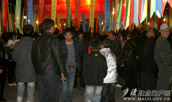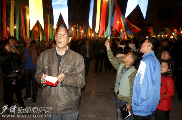 祥虎慶盛世,彩燈迎新春。2月26日(正月十三)晚,麥積區(qū)文化館院內(nèi)人如潮、燈如海,一條條謎面組成的彩帶把院子裝點(diǎn)得格外喜慶,為期三天(正月十三至十五)的麥積區(qū)2010年“祥虎迎春”燈謎晚會(huì)在這里拉開(kāi)帷幕。