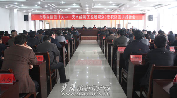 3月11日,天水市委《關(guān)中—天水經(jīng)濟(jì)區(qū)發(fā)展規(guī)劃》宣講團(tuán)一行,深入麥積區(qū)機(jī)關(guān)和社棠鎮(zhèn)舉行宣講報(bào)告。麥積區(qū)四大組織在家領(lǐng)導(dǎo),區(qū)直各部門、各單位主要負(fù)責(zé)同志,黨校教員,共計(jì)200余人在政府九樓會議室聆聽了宣講報(bào)告。
