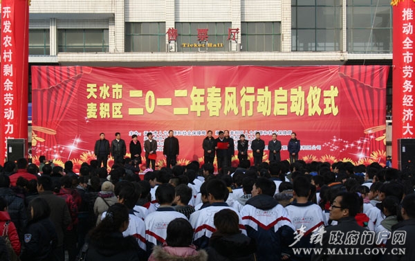 12月31日下午,由市人社局、市總工會(huì)、市婦聯(lián)和麥積區(qū)政府主辦的全市2012年“春風(fēng)行動(dòng)”啟動(dòng)儀式在麥積區(qū)啟動(dòng),標(biāo)志著全市為期三個(gè)月的“春風(fēng)行動(dòng)”正式拉開(kāi)序幕。