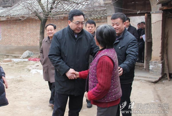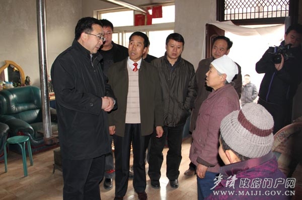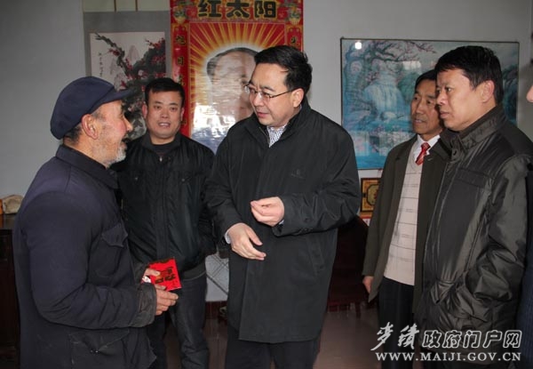 1月5日上午,區(qū)委書記張智明,區(qū)委常委、政法委書記臧志軍,副區(qū)長李潤等冒著嚴(yán)寒,來到花牛鎮(zhèn)董源村、曹埂村、高灣村和廿鋪村,走訪慰問特困群眾、低保戶、困難黨員、二女戶及復(fù)退老軍人,為他們送去慰問金和慰問品,表達區(qū)委、區(qū)政府對困難群眾的關(guān)愛之情。