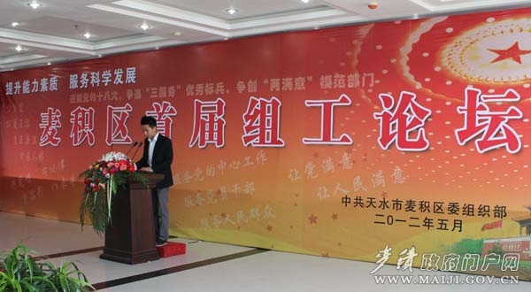和著建設(shè)秀美麥積的熱潮、伴著打造隴上強(qiáng)區(qū)的旋律,5月19日,麥積區(qū)首屆組工論壇拉開(kāi)帷幕。本次論壇以提升能力素質(zhì)、服務(wù)科學(xué)發(fā)展為主題,旨在傾聽(tīng)組工干部心聲,了解組工干部生活,感悟組工干部情懷,進(jìn)一步弘揚(yáng)組織部門政治堅(jiān)定、公道正派、清正廉潔、甘為人梯的優(yōu)良作風(fēng)。