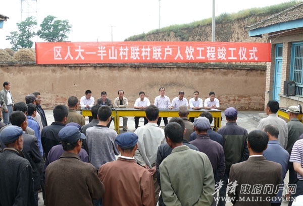 正當(dāng)全區(qū)上下認(rèn)真貫徹落實省、市聯(lián)村聯(lián)戶為民富民行動工作會議精神,深入扎實推進(jìn)聯(lián)村聯(lián)戶工作之際,區(qū)人大常委會辦公室聯(lián)系村--社棠鎮(zhèn)半山人飲工程,通過區(qū)鄉(xiāng)兩級、有關(guān)各方的大力支持和辛勤努力,終于順利完成工程建設(shè)任務(wù),6月29日,半山村舉行人飲工程竣工通水儀式。區(qū)人大常委會主任賈應(yīng)珍,副主任李加峰、馬麗宏、崔德祥、程鵬、石勝利、劉克寧及區(qū)人大機(jī)關(guān)部分干部職工、區(qū)雙聯(lián)辦、區(qū)水務(wù)局、扶貧辦、社棠鎮(zhèn)政府、清水縣水務(wù)部門的負(fù)責(zé)人及部分村民代表100多人參加通水儀式。