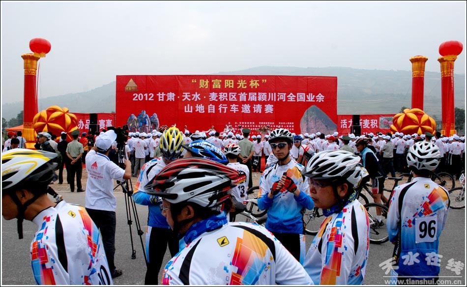 2012甘肅•天水•麥積區(qū)首屆“財(cái)富陽光杯”穎川河全國業(yè)余山地自行車邀請賽,由甘肅省體育總會(huì)、甘肅省自行車協(xié)會(huì)和天水市麥積區(qū)人民政府聯(lián)合舉辦,甘肅重邦置業(yè)有限責(zé)任公司和天水匯洲物資實(shí)業(yè)有限公司冠名贊助。比賽分團(tuán)體、個(gè)人兩種形式,包括男子精英組(18至50歲)、老年男子組(51至65歲)女子組(18至50歲)和騎行組四個(gè)組別,吸引了來自北京、河南、陜西、寧夏、山西、湖南、湖北、遼寧、廣東、浙江、山東、四川、貴州、云南、甘肅等15個(gè)省、市、自治區(qū)和臺(tái)灣地區(qū)的277名業(yè)余自行車運(yùn)動(dòng)員報(bào)名參加。參賽的還有美國友人1名。為保證比賽順利舉辦,麥積區(qū)做了大量準(zhǔn)備工作,專門成立了籌備工作領(lǐng)導(dǎo)小組,分綜合、競賽、氛圍營造、宣傳、接待、安全保衛(wèi)、醫(yī)療保障、后勤保障等8個(gè)工作小組,確保了整個(gè)賽事的圓滿成功。