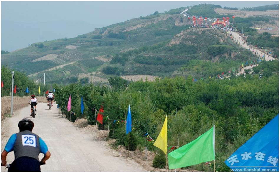 本次比賽涉及的翠山(東山)公路和麥賈公路,位于麥積區(qū)穎川河流域綜合開發(fā)重點(diǎn)項(xiàng)目實(shí)施區(qū),賽道沿途風(fēng)光秀美,景色宜人,包括上下坡、起伏路段、柏油路面、水泥路面和礫石路面等,具有一定的挑戰(zhàn)性。麥積區(qū)穎川河流域北接麥積城區(qū)和天水國家級(jí)經(jīng)濟(jì)技術(shù)開發(fā)區(qū),南靠風(fēng)景秀美的麥積山景區(qū),處于城區(qū)、開發(fā)區(qū)和風(fēng)景區(qū)三大主要功能區(qū)之間,是天水城市未來發(fā)展的重要功能拓展區(qū)。去年10月,麥積區(qū)穎川河流域綜合開發(fā)項(xiàng)目啟動(dòng),該項(xiàng)目范圍包括穎川河和東柯河兩部分,涉及馬跑泉、甘泉、麥積、伯陽4鎮(zhèn)57個(gè)行政村,流域總面積356平方公里;建設(shè)內(nèi)容主要分為基礎(chǔ)設(shè)施建設(shè)、生態(tài)環(huán)境建設(shè)、產(chǎn)業(yè)結(jié)構(gòu)調(diào)整等4部分,概算總投資89.4億元,力爭利用3-5年時(shí)間,把該區(qū)域建設(shè)成為天水市乃至全省有影響的旅游、產(chǎn)業(yè)、人居優(yōu)勢區(qū),打造成經(jīng)濟(jì)繁榮、山川秀美、人民富裕、社會(huì)和諧的生態(tài)、景觀、產(chǎn)業(yè)和文化長廊。目前,該工程已啟動(dòng)項(xiàng)目53個(gè),基礎(chǔ)設(shè)施建設(shè)方面,啟動(dòng)了20公里的東山梁景觀大道硬化工程、15公里的甘江溝產(chǎn)業(yè)區(qū)道路、42公里產(chǎn)業(yè)區(qū)砂化道路等;生態(tài)環(huán)境建設(shè)方面,實(shí)施東山大地埂綠化38.4萬米、生態(tài)景觀林4200畝、道路綠化21公里,啟動(dòng)了農(nóng)村環(huán)境連片整治項(xiàng)目,實(shí)施了穎川河景觀堤防前期工作;產(chǎn)業(yè)結(jié)構(gòu)調(diào)整方面,次核心區(qū)主要圍繞低產(chǎn)田改造完成2.5萬畝果園建設(shè)和3000畝設(shè)施蔬菜建設(shè),發(fā)展林下經(jīng)濟(jì)2.3萬畝,實(shí)施建設(shè)養(yǎng)殖小區(qū)3個(gè),核心區(qū)啟動(dòng)了大柳樹500畝城市綜合體前期征地工作;文化旅游建設(shè)方面,啟動(dòng)了“大麥積”國際生態(tài)旅游文化示范區(qū)策劃工作,投資3.5億元的麥積全國綜合養(yǎng)老示范基地、投資10億元的省建投生態(tài)觀光園、投資2.8億元的街子溫泉度假酒店改擴(kuò)建項(xiàng)目全面啟動(dòng)實(shí)施,甘泉核桃專業(yè)市場、甘泉旅游產(chǎn)品市場建設(shè)全面推進(jìn),與甘肅眾邦置業(yè)公司達(dá)成了投資5億元的西部印象休閑度假村合作協(xié)議。