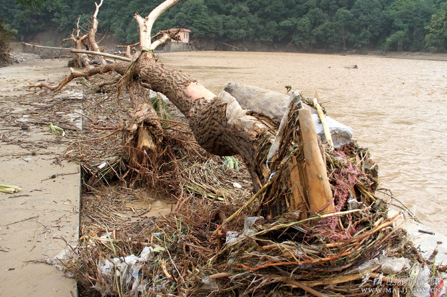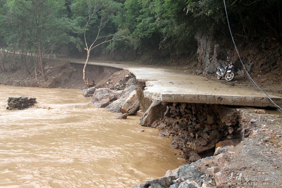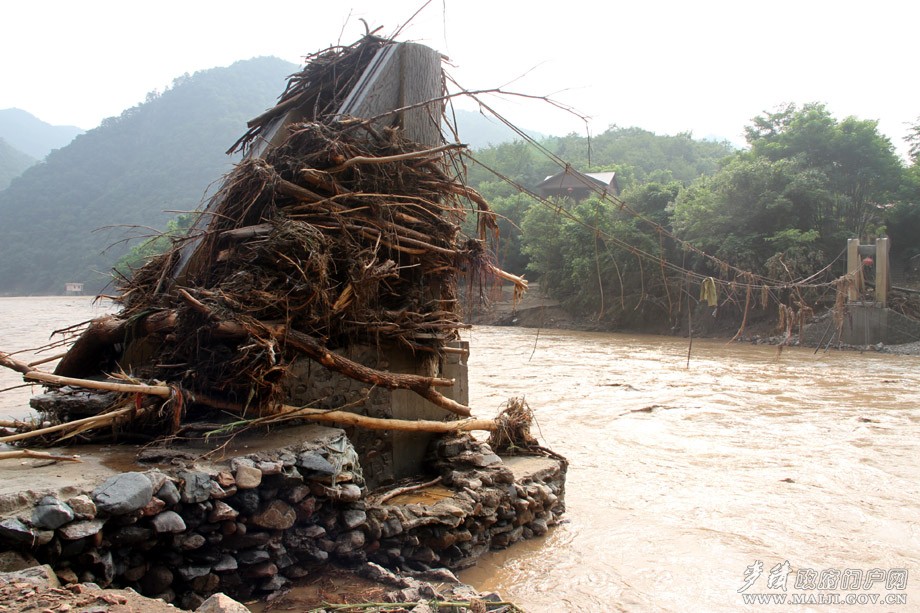 7月24日晚至25日,麥積區(qū)境內(nèi)遭受今年以來第四次強降雨襲擊,麥積、甘泉、黨川、伯陽、元龍等鄉(xiāng)鎮(zhèn)再次受災(zāi)。特別在黨川鄉(xiāng),由于受上游娘娘壩鎮(zhèn)災(zāi)情影響,從25日早上6時40分起,境內(nèi)白家河、冷水河開始暴漲,洪水沖毀了沿線剛剛修復(fù)的道路、橋梁,通往下游村組的交通中斷;11時許,白家河流量達到每秒1300立方米(曲溪水文站監(jiān)測數(shù)據(jù)),洪峰高度達8米,洪水沖毀河堤、淹沒農(nóng)田、漫過村民修建的擋水墻,灌入新莊村新莊組、阮坑組,致使該村53戶371間房屋進水,倒塌16間,形成危房123間,損失慘重。此外,洪水還沖毀了白家河上6米寬60米長大橋一座,通往子廟溝、馬場等村的交通中斷。目前,黨川鄉(xiāng)冷水、新莊等村通訊、電力仍然中斷,干部群眾只能徒步出入救災(zāi)。由于預(yù)警及時,駐村干部迅速組織群眾轉(zhuǎn)移,本次暴雨及洪災(zāi)未造成人員傷亡。