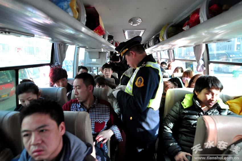 據(jù)了解,該局為配合全市2014年春運(yùn)安全工作,營(yíng)造安全和諧的春運(yùn)環(huán)境,對(duì)麥積汽車客運(yùn)站及火車站廣場(chǎng)臨時(shí)發(fā)車點(diǎn)加強(qiáng)源頭管理。嚴(yán)格執(zhí)行“三不進(jìn)站、六不出站”的規(guī)定,對(duì)旅客攜帶的行包,每件必須經(jīng)過“三品”檢查儀檢查,對(duì)所有進(jìn)出客運(yùn)站的班線車、公交車及其從業(yè)人員(駕駛員)進(jìn)行安全檢查,按定員售票,不得超員。并對(duì)司乘人員進(jìn)行了安全教育工作。杜絕超速、搶點(diǎn)等違法行為發(fā)生,對(duì)未參加春檢的客運(yùn)車輛堅(jiān)決不準(zhǔn)參加春運(yùn)運(yùn)輸任務(wù),充分利用GPS 系統(tǒng)平臺(tái)。進(jìn)行全過程的動(dòng)態(tài)監(jiān)控。加大路查、路檢工作力度。對(duì)站外攬客、超員運(yùn)行、私漲票價(jià)、倒客、賣客等違法行為加大嚴(yán)懲力度,對(duì)春運(yùn)期間私漲票價(jià)的車輛一經(jīng)查實(shí)取消春運(yùn)資格,情節(jié)嚴(yán)重的,吊銷其道路運(yùn)輸證,并要求運(yùn)輸企業(yè)對(duì)安全性能不達(dá)標(biāo)的車輛堅(jiān)決不準(zhǔn)接納其進(jìn)站報(bào)班。