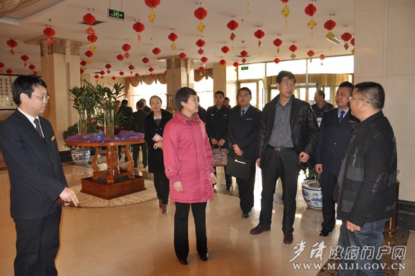 春節(jié)將至,為切實加強春節(jié)期間的安全防范工作,及時消除各類事故隱患,確保全區(qū)文化旅游市場各經(jīng)營場所安全穩(wěn)定,2月13日下午,麥積區(qū)開展春節(jié)前文化旅游市場檢查活動。區(qū)委常委、宣傳部部長、區(qū)文化市場管理工作領(lǐng)導(dǎo)小組組長董珺,區(qū)政府副區(qū)長、區(qū)文化市場管理工作領(lǐng)導(dǎo)小組副組長楊鐵森,區(qū)政府副區(qū)長王亞梅帶領(lǐng)區(qū)文廣局、旅游局、公安分局、工商局、安監(jiān)局、消防大隊、食藥監(jiān)局等單位負責(zé)人和執(zhí)法人員參加檢查活動。