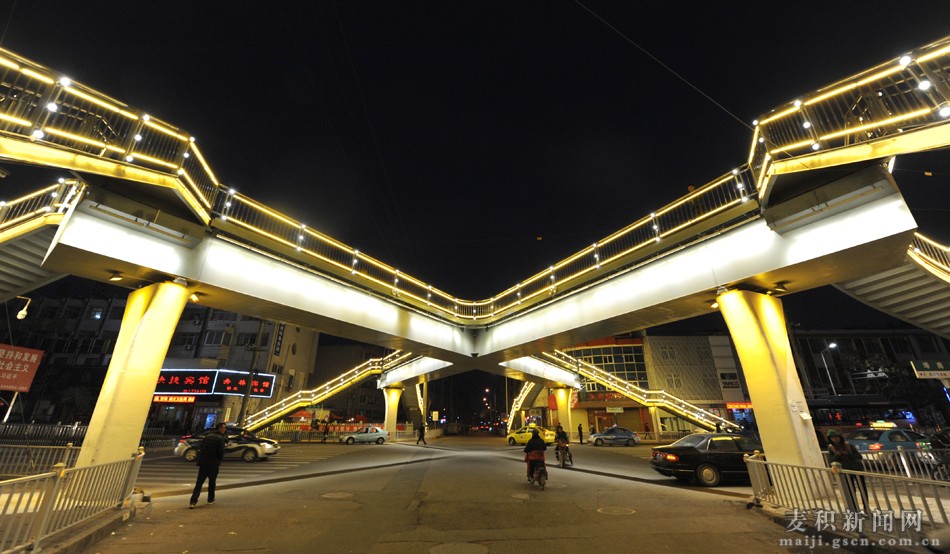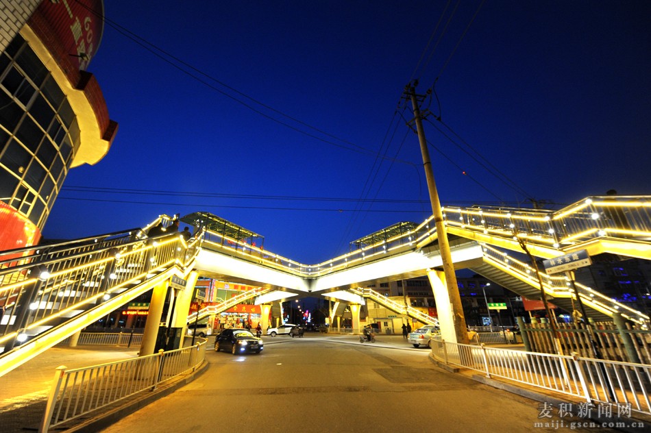 每當(dāng)夜幕降臨、華燈初上時(shí)分,麥積區(qū)埠南路——林水路什字人行天橋的LED造型亮化燈同時(shí)“點(diǎn)亮”,整座橋猶如飛架在城市上空的“彩虹”,既美化了麥積夜色,又方便了市民出行,市民“點(diǎn)贊”聲一片嘩然。