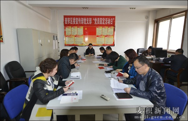 3月14日,麥積區(qū)委宣傳部黨支部開展以“兩學(xué)一做”為主要內(nèi)容的首次“黨員固定活動日”主題活動,啟動“兩學(xué)一做”學(xué)習教育。區(qū)委常委、宣傳部長董珺以普通黨員身份參加學(xué)習活動。