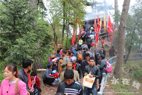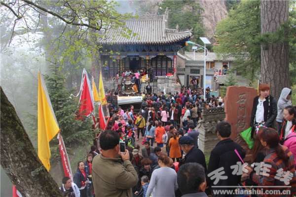 農(nóng)歷四月初一,傳說是道教無量祖師降生之日,天水民間在這一天有燒香祈福的習(xí)俗,拜娘娘求姻緣求子、拜文昌求學(xué)、拜藥王祛病。石門山作為隴東南地區(qū)的道教勝地,以秀美的風(fēng)光、密集的道教古建筑群、醇厚的宗教氛圍,吸引了大批善男信女慕名而來。今年的廟會(huì)恰逢雨后初晴,石門云海更顯獨(dú)特魅力,神秘的殿宇,雄偉的山巒,熙攘的人群,所有的一切恍惚在云霧中若隱若現(xiàn),宛若置身仙境。來自各地的信眾登上三千多級(jí)天梯,云集在三清殿廣場,舉辦大型廟會(huì)活動(dòng)。點(diǎn)燈、上香、擺供、叩拜,所有的一切都是那么虔誠,滿山香客、裊裊的煙云與石門勝景構(gòu)成了一幅美麗的畫卷。