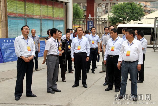 6月6日下午,麥積區(qū)人大常委會(huì)主任賈應(yīng)珍,區(qū)委副書(shū)記、區(qū)長(zhǎng)成少平,區(qū)政協(xié)主席楊續(xù)祥,區(qū)委常委、宣傳部長(zhǎng)董珺,區(qū)人大副主任石勝利,區(qū)政協(xié)副主席王春芳等帶領(lǐng)招委各成員單位及區(qū)直相關(guān)部門負(fù)責(zé)人,深入城區(qū)各考點(diǎn)和區(qū)高考指揮中心,對(duì)全區(qū)高考備考工作進(jìn)行了巡查。