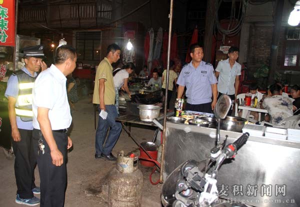 當(dāng)晚整治過程中,聯(lián)合執(zhí)法組對隴昌路西段、道北十字、張家村路口、商埠路東段、林水西路夜市、仿古街、分路口等燒烤攤點以及馬跑泉市場、天河南路、埠南路等城市道路沿線倚店露天燒烤進(jìn)行集中清理整頓,收到了良好的效果。