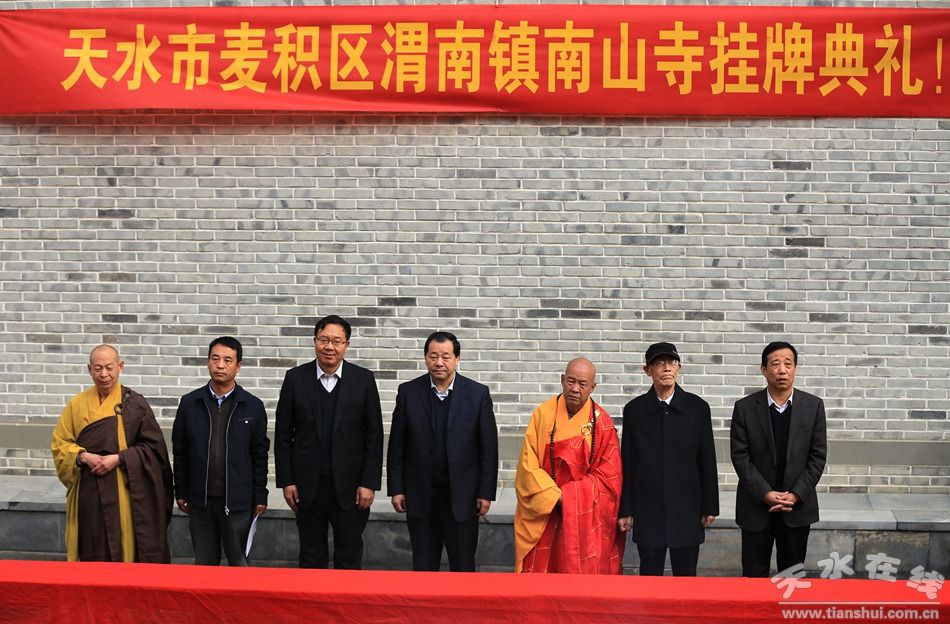 11月14日上午, 位于麥積區(qū)渭南鎮(zhèn)張?jiān)澹筛拭C盛達(dá)集團(tuán)董事長(zhǎng)趙滿堂先生斥巨資鼎力支持修建的南山寺,舉行了隆重盛大的掛牌成立儀式。麥積區(qū)政協(xié)主席楊續(xù)祥。全國(guó)人大代表、甘肅省政協(xié)常委、甘肅盛達(dá)集團(tuán)董事長(zhǎng)趙滿堂,甘肅佛教協(xié)會(huì)副會(huì)長(zhǎng)、天水市佛教協(xié)會(huì)會(huì)長(zhǎng)、滲金寺主持悟空法師,麥積區(qū)委統(tǒng)戰(zhàn)部副部長(zhǎng)、區(qū)民族宗教事務(wù)管理局局長(zhǎng)謝崇太,天水市人大代表、華夏盛達(dá)實(shí)業(yè)集團(tuán)有限公司副總裁頡光照等有關(guān)方面人士和來(lái)自四面八方的信教群眾一千多人參加了掛牌典禮。 渭南鎮(zhèn)副鎮(zhèn)長(zhǎng)賈江波主持掛牌儀式。