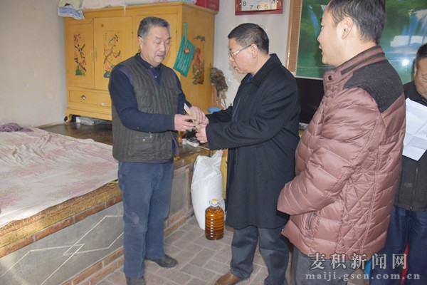 慰問中,賈應(yīng)珍先后來到貧困戶王秀英、王建民家中,親切詢問他們一年來的生產(chǎn)生活、就醫(yī)就學(xué)、經(jīng)濟(jì)收入等情況,送上了慰問金和面粉、食用油等生活用品,祝愿他們過一個(gè)歡樂祥和的春節(jié)。并勉勵(lì)他們克服困難,擺脫貧困,過上好日子。