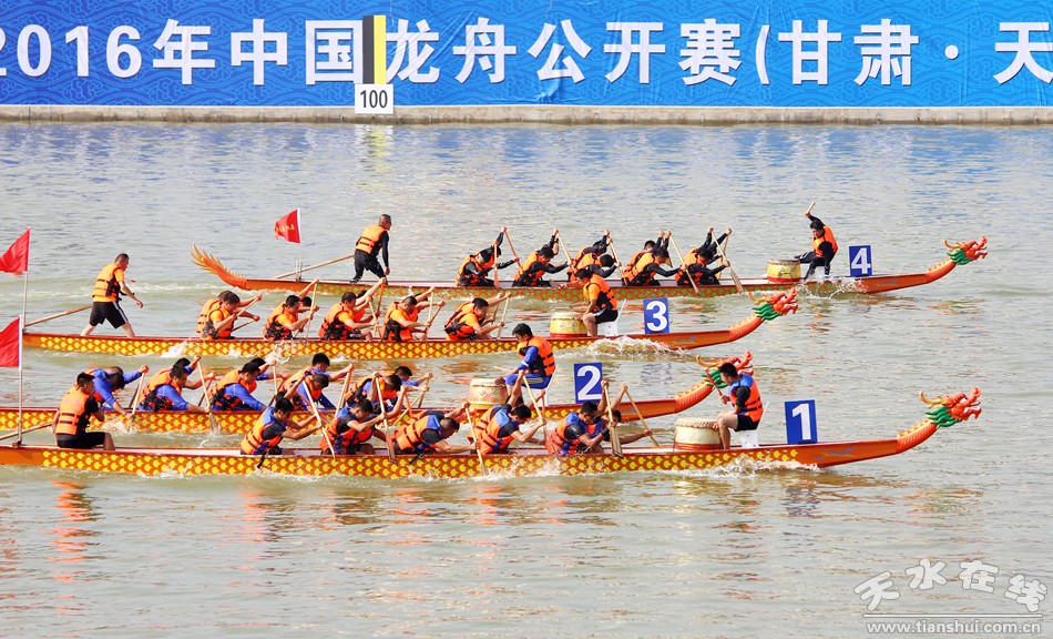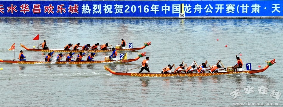 ▲圖為2016年中國龍舟公開賽(甘肅·天水·麥積站)比賽現(xiàn)場