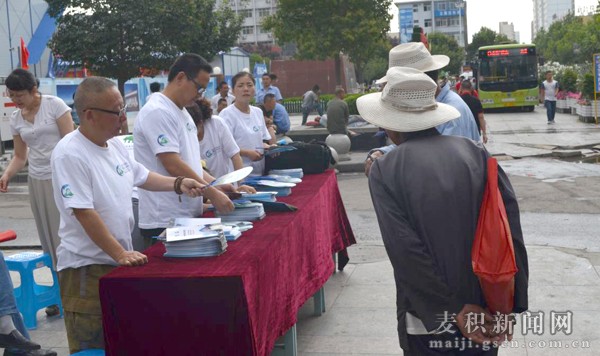 注重社會宣傳。7月17日 ,宣傳部、文廣局組織干部在火車站、商埠路步行街東段,設(shè)了兩個宣傳資料發(fā)放點,為市民發(fā)放了《中國綠色催化專家智庫綠色及可持續(xù)發(fā)展麥積山論壇》宣傳資料。此次宣傳活動現(xiàn)場發(fā)放宣傳手冊5000余本,宣傳紙扇3000余把。利用現(xiàn)有戶外廣告牌,在橋南盤旋路立交橋懸掛宣傳標語;利用城區(qū)主要干道,通過莫爾街LED屏,對“麥積山論壇”舉辦時間、地點和主題進行輪番宣傳。