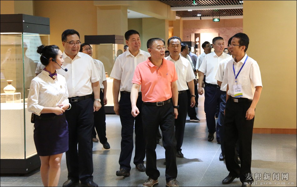 7月27日,第十六屆環(huán)青海湖國際公路自行車賽天水-平?jīng)鲑惗伟l(fā)車儀式在麥積區(qū)博物館(龍園)舉行,發(fā)車儀式結(jié)束后,參加儀式的市委書記王銳,市委副書記、市長王軍,市政協(xié)主席張明泰等市領(lǐng)導(dǎo)參觀了麥積區(qū)博物館。