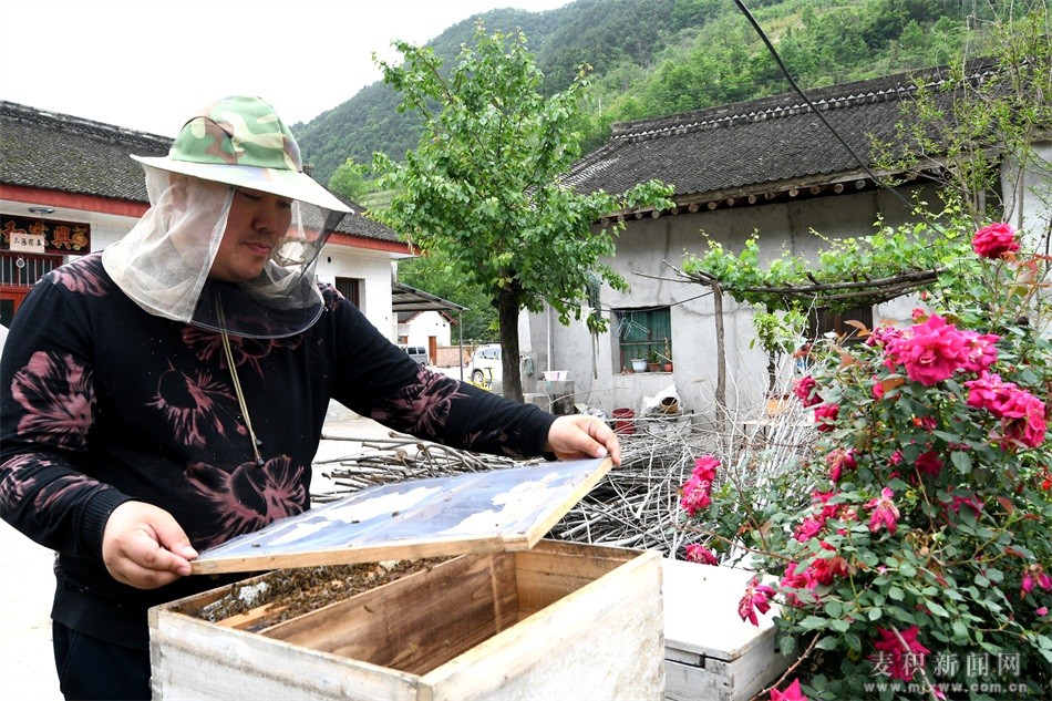 云霧繞山間,層巒疊翠的山林樹木,盛開的山花,清澈的山泉……在天水桃花溝森林公園景區(qū)之內(nèi)的麥積區(qū)東岔鎮(zhèn)土橋村,董智琦有著一份甜蜜的事業(yè),他用自己勤勞的雙手養(yǎng)殖中華土蜂,釀造出了脫貧致富的新生活。