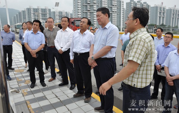 7月7日,市委副書記、市長王軍帶領市直相關部門、單位負責同志到麥積區(qū)檢查調研城市建設項目。市政府副秘書長、辦公室主任王永祥,市政府副秘書長楊勝利一同調研。