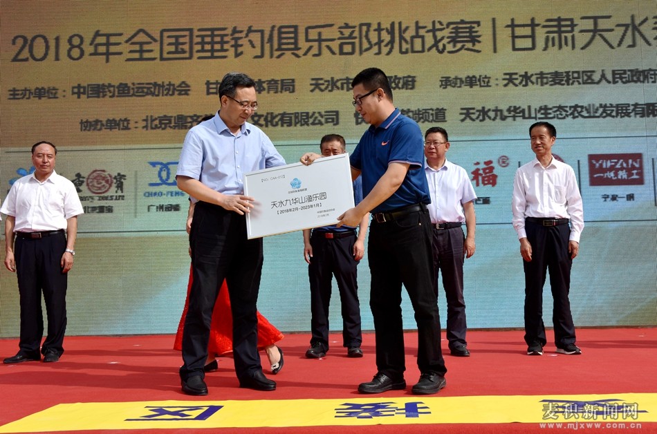 (國(guó)家體育總局社會(huì)體育指導(dǎo)中心二部主任、中國(guó)釣魚(yú)運(yùn)動(dòng)協(xié)會(huì)秘書(shū)長(zhǎng)蘇寶生為麥積區(qū)授牌,市政協(xié)副主席、麥積區(qū)委書(shū)記張智明接牌)